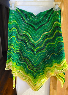 For those of you familiar with the Wavy Garden Shawl, or Wavy Garden Revisited Shawl, this uses a similar lace pattern throughout to highlight the interesting color.