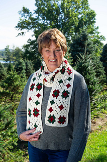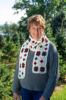 The Petal Patch Scarf is made from different sized granny squares and inspired by patchwork quilting. A subtle pattern is repeated along the whole length of the scarf and is reminiscent of a path of flower petals. This scarf pattern is easily customizable and is a great scrap busting project.