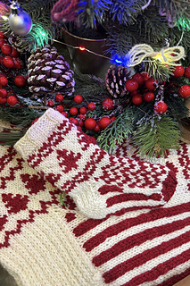 The pattern is designed in 2 different sizes: a small one for decorating mantlepieces, trees, and for little gifts. And a larger stocking perfect for receiving exciting presents from Santa! The pattern includes full colour charts and a schematic.