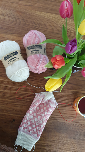 One single sock uses about 45-55 grams of yarn in total, which means you could potentially knit 2 pairs of socks with 2 balls of Scheepjes Arcadia yarn, if you invert the colour palette for the second pair.