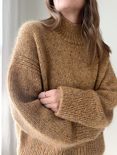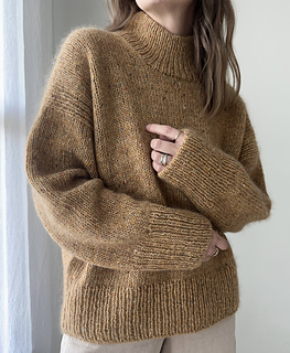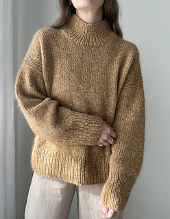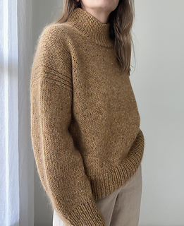 The Port Sweater is worked from the top down. It features a boxy silhouette with thoughtful and simple details throughout. The sweater is finished with a mock turtleneck and oversized cuffs.
