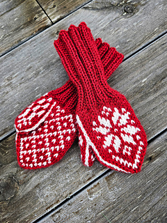Knitting pattern for kids mittens inspired by Norwegian knitting traditions.