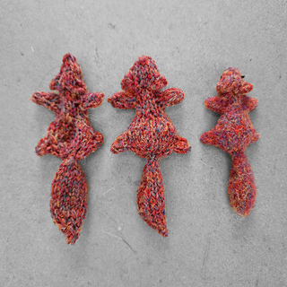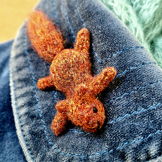The squirrel is knitted as a length of I-cord, with the legs and ears knitted as you go, as simple short rows.