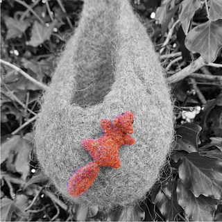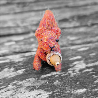 The tiniest beasties are often the fiddliest to make but this little squirrel is surprisingly straightforward. You knit the squirrel in one piece, from tail tip to nose, and then wet felt it down to a neat miniature of itself. I like knitting animals in gently heathered Shetland yarn, as it makes natural looking fur with a soft, fuzzy bloom.
