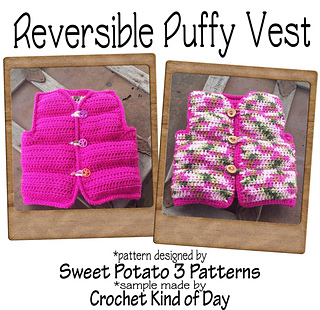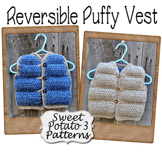 An adorable puffy vest that isn’t just cute, but reversible!!! This is seriously so cute and perfect for those little ones in your life. The pattern comes in the following sizes:
