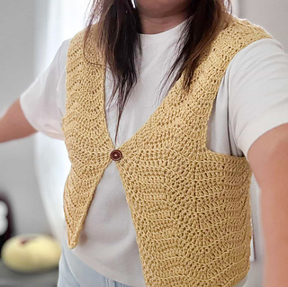Crochet vest fashion is very on trend. Work this simple pattern to create your own vest, the perfect layering piece to wear in Spring and Autumn.