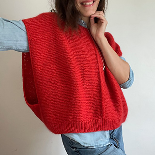 Ronan is an oversized slip-over, knitted with two strands of yarn, a lambswool fingering and a silk mohair lace, for a very soft and warm result. It is entirely knitted in garter stitch and i-cord finish. It can be worn over a t-shirt or a shirt, or even over the Stephen tank top, with which it forms the perfect set!