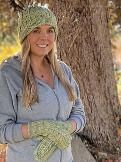 This coordinating hat-and-mittens set features fun-to-work dip stitches and sculptural cables, creating cozy accessories with captivating texture and lots of SQUISH.