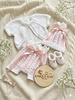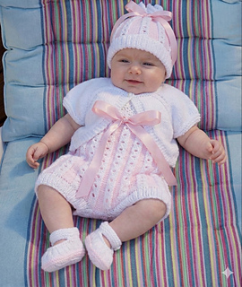 This beautiful knitting pattern idea for the summer provides the instructions to make the complete 4 piece set. The Bolero is knitted from the top-down and the bloomers and hat are knitted sideways, so the zig-zag edge is included in the main part as you knit. You just pick up stitches for the bloomer cuffs and on the brim of the hat. The patter has line by line detailed instruction so no awkward calculations to figure out.