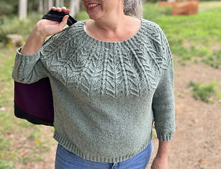 Roseneath is a carefree pullover with a lace yoke and side panels that delicately echo the motif. Worked from the top down in one piece, this simply constructed sweater has options for both long and short sleeves. Depending on your yarn choice, it can be a light mid-season piece or a warm, cozy pullover. Check out what the test knitters have done!