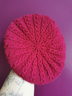La version DK/worsted du Béret Roseraie complète le modèle original tricoté en fil Chunky.