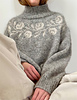 Rosie Yoke Sweater is worked top-down (the neckband is added at last) with a raised back neck, created using German short rows (GSR). This means that when working the short rows, you work back and forth in stockinette stitch (knit on the right side, purl on the wrong side). Apart from the short rows, the sweater is worked in stockientte stitch only. The yoke is shaped with increases. The colorwork pattern and the increases are shown in the chart.