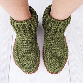 This slipper pattern features a leather bottom sole for durability and comfort. The stitch method developed for this pattern allows for a clean streamlined edging on the slipper bottom with no unsightly visible holes. Included in the pattern are sole templates with hole placement position in sizes US 6-11 (UK sizes 4-9).