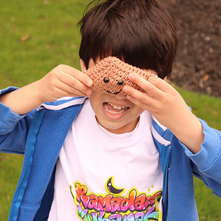 Paintbox Yarns Cotton Aran in soft fudge, 31 yards (Aran Size 4 weight; 1.7 oz./50 g, 93 yds/85 m; 100% cotton) and scrap yarn in black or red for embroidering the mouth. If you would like to embroider eyes you will need some extra scrap black yarn.