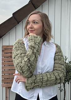 The shrug Schärmel (from the German ‘SCHal’ for shawl and ‘ÄRMEL’ for sleeves) is a sporty yet elegant alternative to a bolero. You may wear it as a shrug to warm your shoulders and sleeves, or as a shawl around your neck. The smocked laceribpatterned design fits wonderfully elastically around the shoulders and arms.