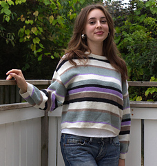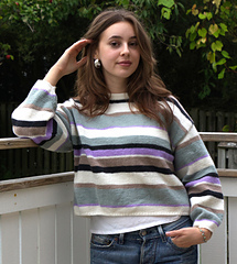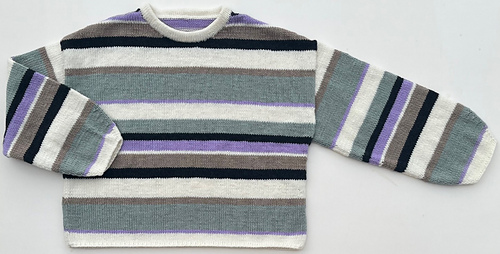 Cropped and oversized sweater with stripe pattern and long puff sleeve. Knitted in 100% fine merino wool. Machine washable.