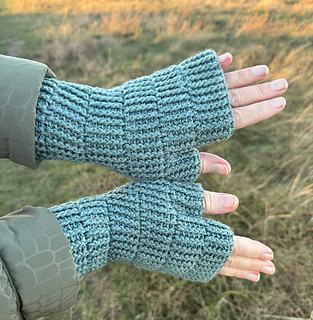 Warm fingerless gloves in a minimalistic pattern. They are made in spiral rounds - so no difficult joining of rounds and completely seamless! They are made with a thumb wedge that gives a great fit for your hands.