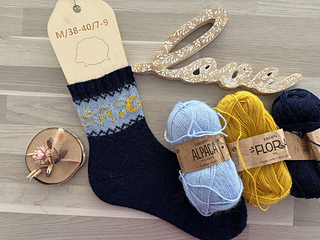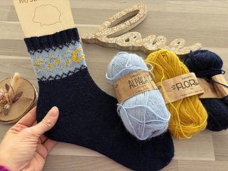 The Selene socks are knitted toe-up. You start with the toe, which is knitted in the traditional way, increasing on each side, and finish with the ankle, which is knitted in ribbing. The ankle is decorated with a moon and stars motif knitted in Fair Isle.