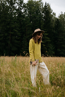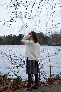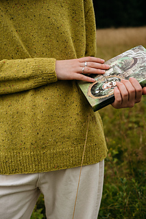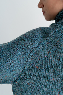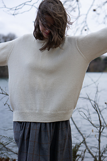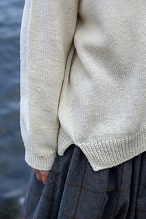 Sleeves are shaped with short row wraps along the cap for a tailored yet comfortable fit without any seaming, then knit in the round for a smooth, minimalist look. Simple stockinette lets your chosen yarn shine, while 1x1 ribbing and tubular finishes give the sweater a polished, ready-to-wear edge.