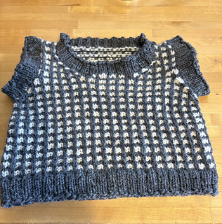 We start working the bottom rib in the round until the armholes, where the front and back are separated and then each side is worked flat until the shoulders.