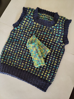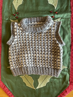 This vest is knitted in the round from the bottom up.