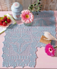 Light blue filet doily with side-by-side rectangles shape and border with delta crochet.