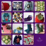 The Shake It Up mitts are knitted in variegated DK weight yarn; hand dyed yarns would be perfect. To minimise pooling, two skeins were alternated every two or three rounds, carrying the non-working yarn up the inside of the mitts.