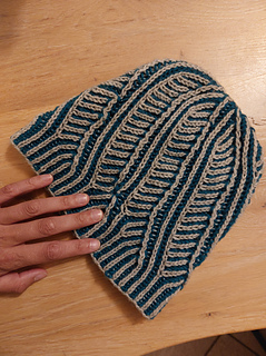 This hat is worked in the round from the bottom up, starting with the brim (or not – the pattern has notes for version 2 without the brim), continuing with the body part and the crown is shaped by decreases, which is finished on double pointed needles. Two-color brioche is unique and the result is like two different hats - you can wear both sides. It creates a gorgeous reversible fabric. This beanie is an average adult size version - if you want a shorter or bigger size – do more or fewer sections, more pattern rounds up or use larger needles.