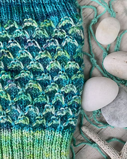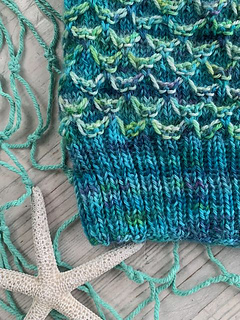 The Shimmering Scales Mermaid Cowl uses the Shimmering Scales stitch from the Mermaid Dance Shawl to create an elegant neck warmer. Using two colors of fingering/sock yarn, the fun, easy-to-learn stitch is created using only one color at a time - no tangling!