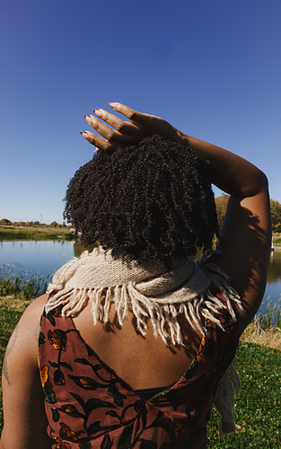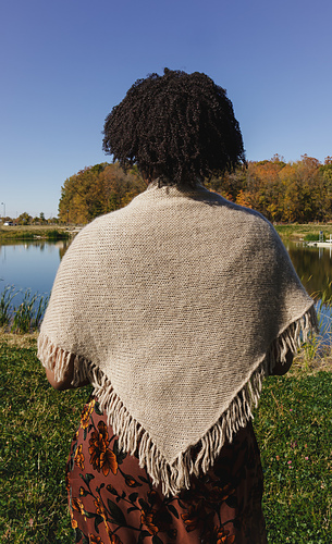 The Shipwreck Shawl begins as a triangular shawl that’s knit on the bias from one triangle tip to the other. Then, right before the bind-off, we unravel three stitches down to the very end of the shawl. Next, we’ll use a crochet hook to pick up these stitches as one simple braid (no crochet experience needed!). Lastly, we will also unravel the first few stitches in our row to create a no-fuss, yet luxurious fringe. So, by the time you are rescued, not only will you have a generously-sized chic shawl, but you will also have some fun new knitting techniques to explore!