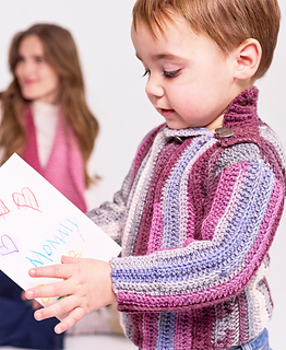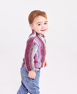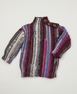 This Sweater is worked sideways in four pieces and seamed together. There is no shaping in this pattern. Instead, the difference in height between single and half double crochet stitches does the work for you!