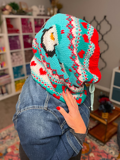 A cozy, colorful crochet snood that doubles as a tall winter cowl! The Snuggle Slide uses split single crochet to create stranded colorwork with a smooth, knit-like finish. Worked in the round with optional ribbing and a drawstring casing, it’s perfect for adventurous beginners exploring colorwork.