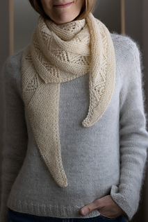 Beautiful in its simplicity, this shawl combines delicate lace pattern with Garter stitch sections. The size of the shawl is easy to adjust by working more or fewer pattern repeats.
