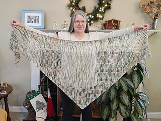 Finished size: Shawl shown in first photo: 56” (142 cm) along top edge, 20” (51 cm) height at center, 34” (86 cm) along each side, after blocking