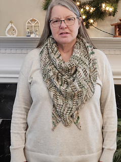 The pattern is both written and charted and includes instructions for adjusting shawl size and for using 2 colors if preferred.