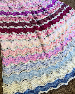 Each panel is a different color setarated by one main color creating a stunning wrap or blanket. There are 6 different panels that are repeated 4 times. I have included a row by row written color coded that will tell you when to change colors.