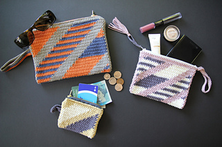 Clutch Purse - 1 x 50g Yarn A (38g used), 1 x 50g Yarn B (27g used) & 1 x 50g Yarn C (27g used). You will have just enough to make a Coin Purse as well, though you may want to swap Yarn A around with one of the other colours.