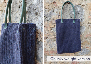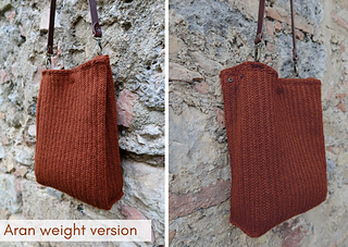 The same pattern is used whether you are working with a aran or chunky weight yarn. Using aran weight will create a standard handbag size, while chunky creates an over-sized bag that can carry a laptop.