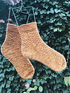 This is a toe-up, Magic Loop sock pattern featuring a modified Judy’s Magic Cast On, a Fleegle Heel, and a broken chevron cable stitch.