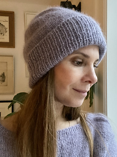 The beanie features a beautifully soft color change as you swap out the mohair thread at the transition from the ribbed hem to the stockinette stitch pattern. You can also knit your beanie in a single color. It can be worn with either the right or the wrong side facing outward.
