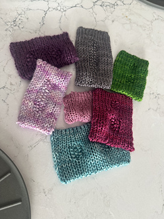 Test knitting: Gabriella B., Vicki G., Lynne L., Tina P., Pam S., & Kristen W.