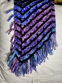 The Chevy Chase is a fun scarf pattern playing with working on a bias to create chevron shaped ends on the scarf. This is great for being thrifty and stash busting, you can use 2 left over skeins from a larger project or as many colors as you wish to create a project as unique as you. I was impressed how well the MC striping yarn worked up when paired with an ombre CC. The Wider scarf was made using 3 partial skeins, alternating every color change so all the colors got a chance to play both the MC and the CC. Pattern has an optional fringe you could attach on every odd CC row for added whimsy.