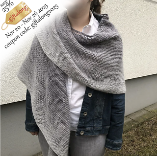 This shawl is made with a 200 gr skein which fades from dark grey to almost white. To get an even more subtle fade I added a silk mohair lace weight yarn.
