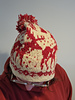 Lambs Pride Superwash Sport (100% wool, 180 yds/165 m), Oats ‘n Cream, 2 skeins; Red Baron, 1 skein.