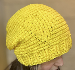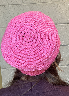 The Sylvia hat is seamless and is made from the band to the crown. You can make this as slouchy as you want.