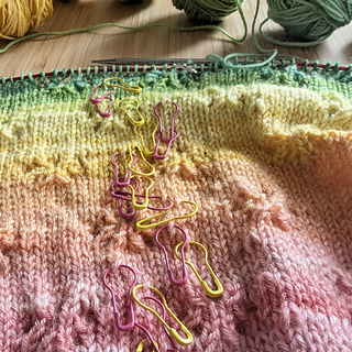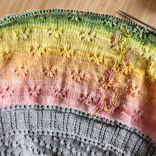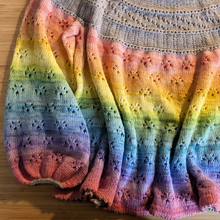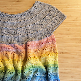 Begin with a gentle lace and textured yoke, add big squooshy sleeves, smatter everything with copious lacy toebeans and you have the Toebean Top!