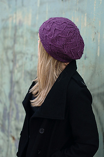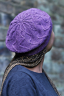 This beret uses simple twists and cables with a combination of decrease techniques to create the stunning design that appears like lightning travelling towards the centre of the Hat.