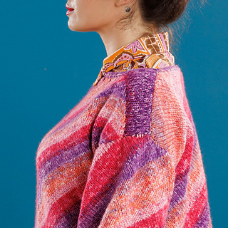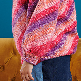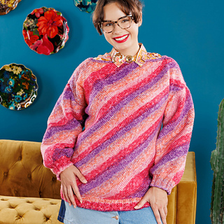 Stand out in this bold and beautiful knit tunic from Red Heart Super Saver Bitty Stripes.