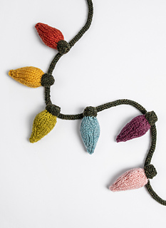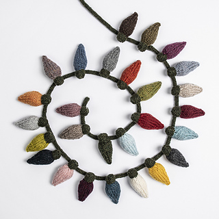 Create your own twinkle and shine lights for the holidays. Knit with one 27 color bundle, you will get 54 colorful bulbs and select a full-size hank for your bulb caps and I-Cord. A fun and festive project.