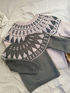 Yarn B: Approx 1(1, 2, 2, 2)(2, 2, 3, 3) balls of yarn for the circular yoke sweater pattern. Approx 232(261, 305, 363, 406)(450, 522, 595, 696)yds.